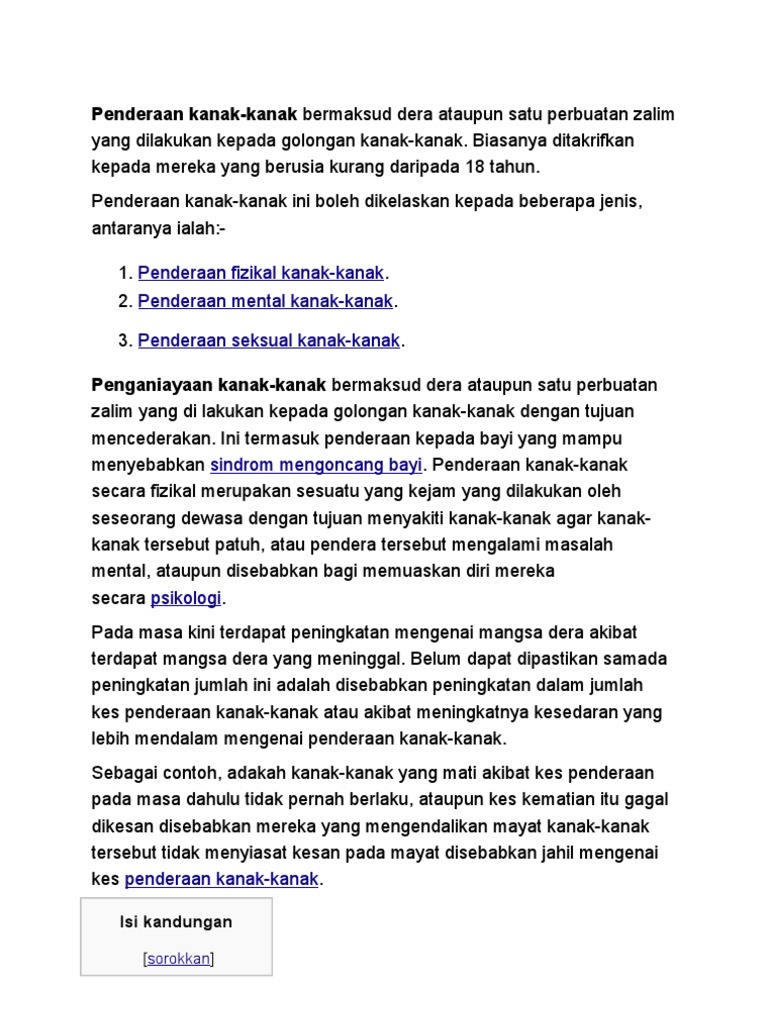 Punca Penderaan Kanak Kanak Dan Langkah Membendung Pdf